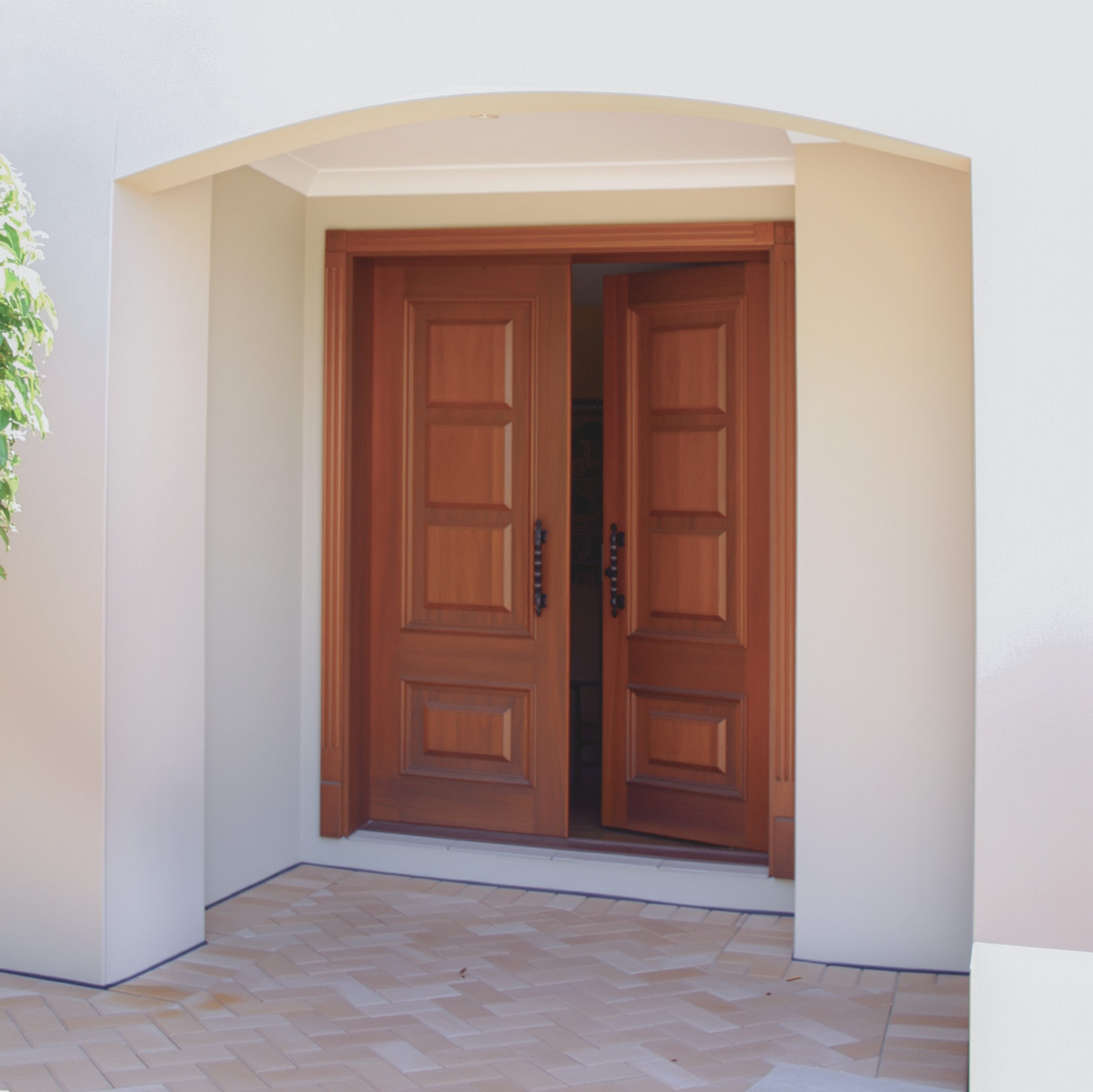 We build using a curated selection of hardwoods — White Oak, Blackbutt, New Guinea Rosewood and architect-specified species. Every BTDW door is: